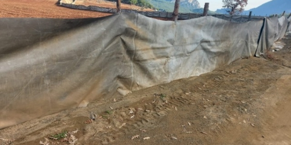 Belirli aralıklarla toprağa sağlam kazıklar çakılır ve branda bu kazıklara gergin şekilde sabitlenir. Brandanın özellikle gri renkli olması tavsiye edilir.